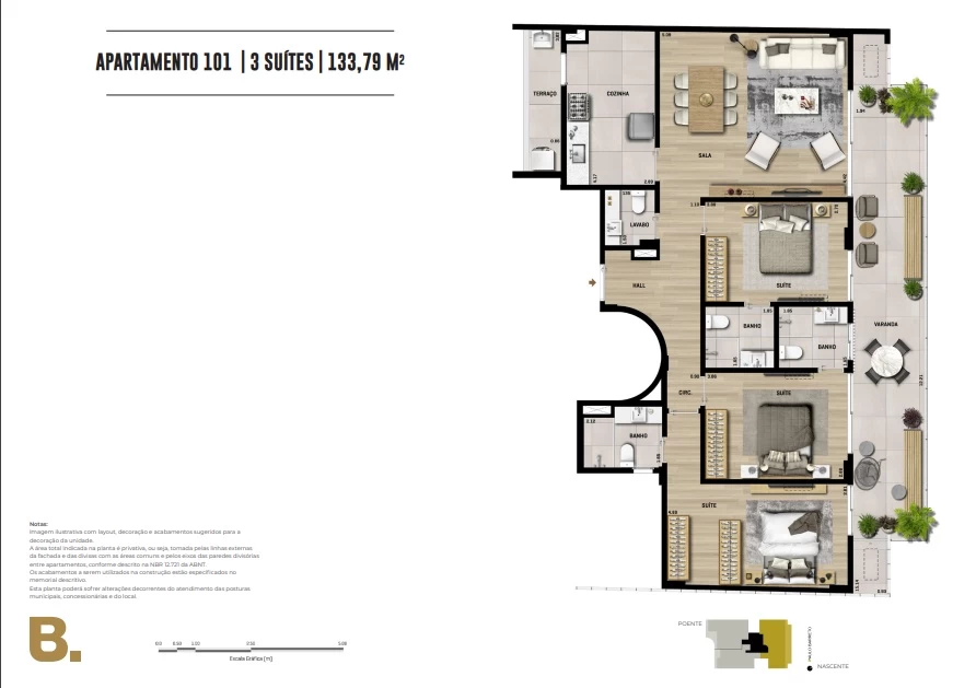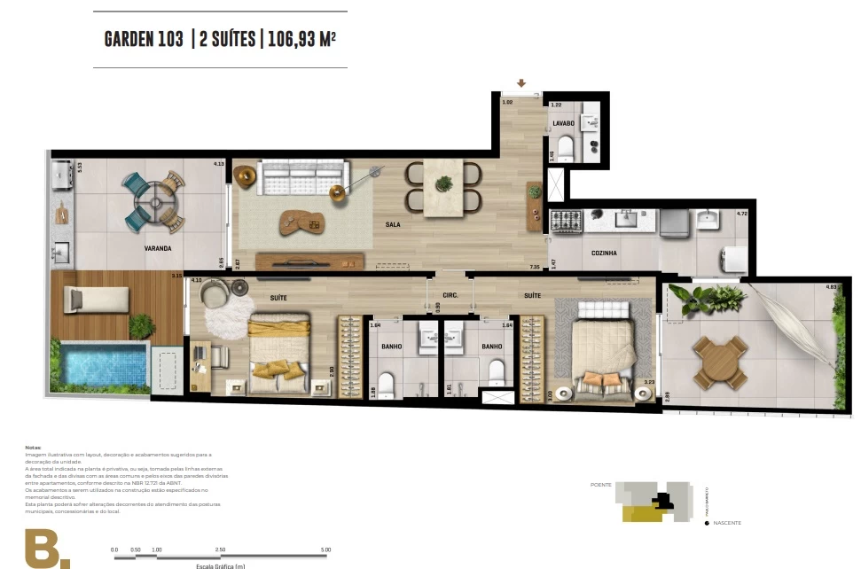 Garden 3 suítes com 134m².