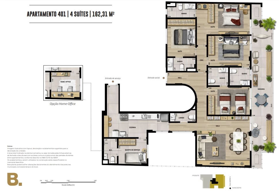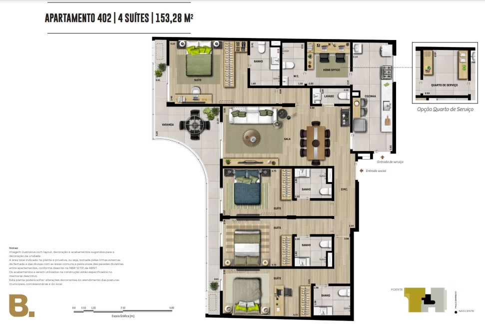 Apartamentos com 4 suítes 153m² até 162m².