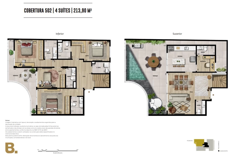 Cobertura de 4 suítes 213m².
